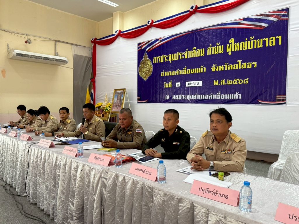 วันที่ 1 เมษายน 2568 นายสุชาติ ปกป้อง เกษตรอำเภอคำเขื่อนแก้ว เข้าร่วมการประชุมกำนัน ผู้ใหญ่บ้าน และแพทย์ประจำตำบล ครั้งที่ 4/2568 ประจำเดือนเมษายน เพื่อชี้แจงข้อราชการต่าง ๆ ที่เกี่ยวข้อง และประชาสัมพันธ์การหยุดเผาในพื้นที่การเกษตร ในห้วงตั้งแต่ 17 มกราคม – 31 พฤษภาคม 2568 ตาม ประกาศกระทรวงเกษตรและสหกรณ์ เรื่องมาตรการบริหารจัดการป้องกันและแก้ไขปัญหาฝุ่นละอองขนาดเล็ก ไม่เกิน 2.5 ไมครอน (PM 2.5) ภาคการเกษตร ณ หอประชุม 100 ปี อำเภอคำเขื่อนแก้ว อำเภอคำเขื่อนแก้ว จังหวัดยโสธร