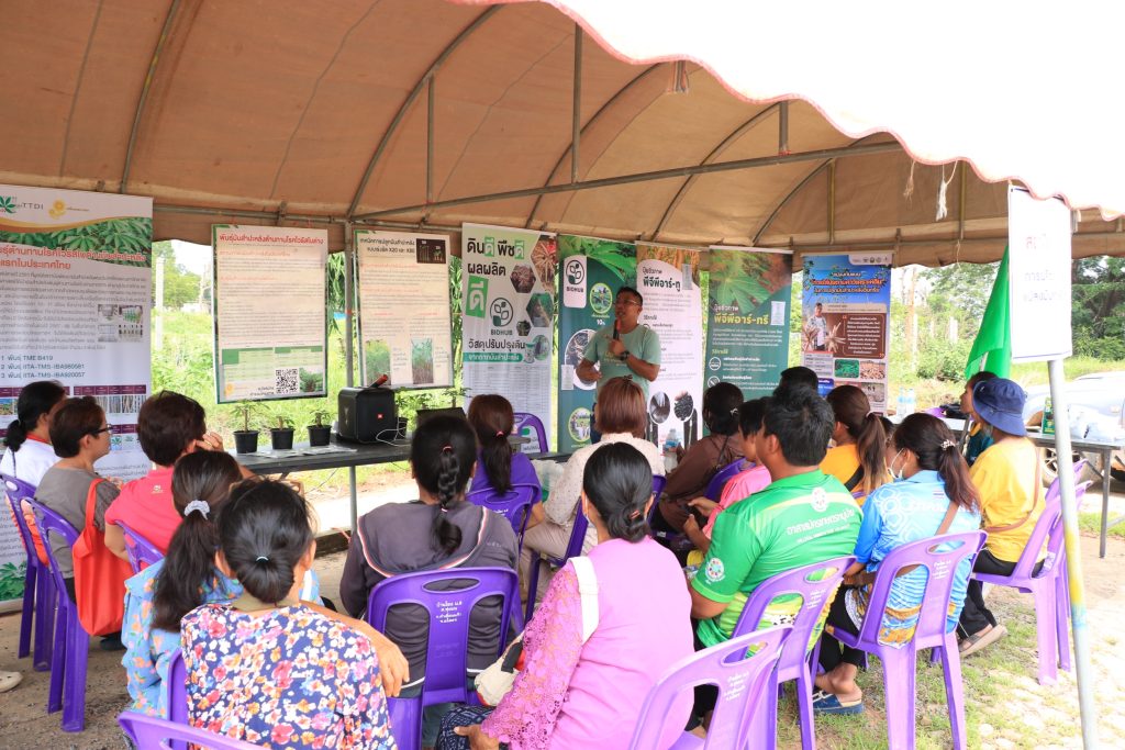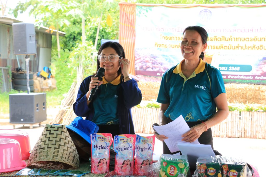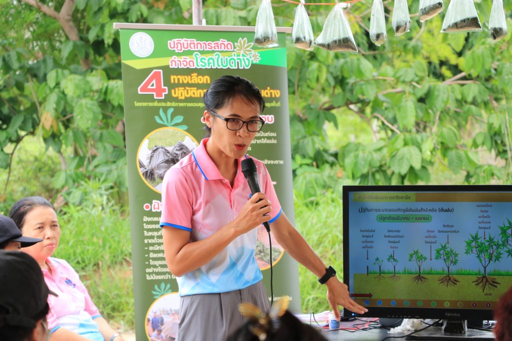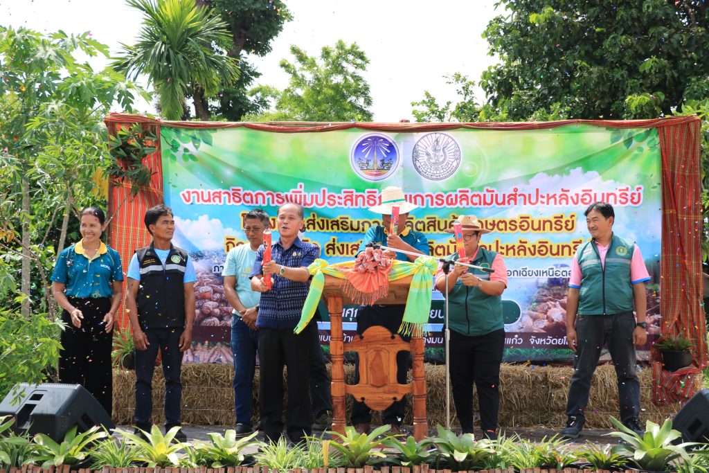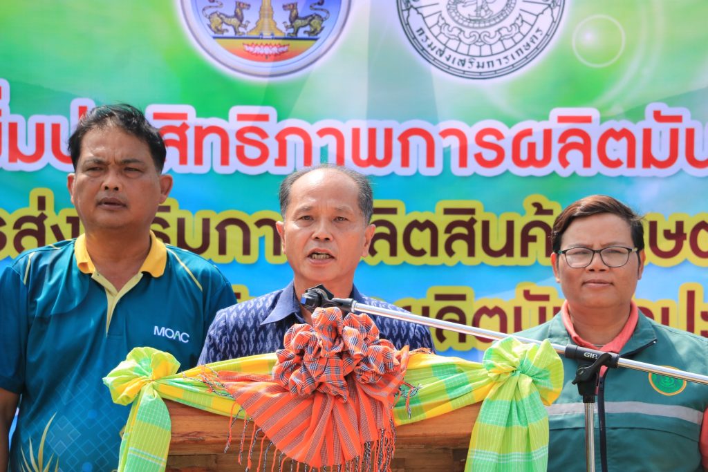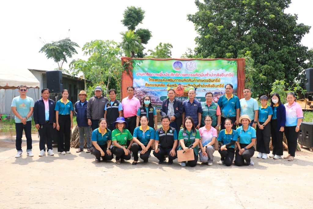 วันที่ 6 มิถุนายน 2568 นายสุชาติ ปกป้อง เกษตรอำเภอคำเขื่อนแก้ว พร้อมด้วย เจ้าหน้าที่สำนักงานเกษตรอำเภอคำเขื่อนแก้ว ร่วมกับ สำนักงานเกษตรจังหวัดยโสธร จัดงานสาธิตการเพิ่มประสิทธิภาพการผลิตมันสำปะหลังอินทรีย์ ตามโครงการส่งเสริมการผลิตสินค้าเกษตรอินทรีย์ กิจกรรมส่งเสริมการผลิตมันสำปะหลังอินทรีย์โดยมี นายนพดล ผุดผ่อง เกษตรจังหวัดยโสธร เป็นประธานเปิดงาน นางสาวจันทราพร ประธาน หัวหน้ากลุ่มส่งเสริมและพัฒนาการผลิต กล่าวรายงานวัตถุประสงค์ เพื่อพัฒนาเกษตรกรให้มีความรู้ในกระบวนการผลิตมันสำปะหลังอินทรีย์ให้ได้มาตรฐาน เพิ่มพื้นที่เกษตรอินทรีย์ให้มากขึ้น เกษตรกรได้รับความรู้และเทคโนโลยีใหม่ๆ ในการผลิตมันสำปะหลังให้ผลผลิตเพิ่มขึ้น ลดต้นทุนการผลิตและเพิ่มรายได้ให้แก่เกษตรกร สร้างความเข้มแข็ง พึ่งพาตนเองได้อย่างยั่งยืน ในการจัดงานครั้งนี้มีเกษตรกรและผู้ที่สนใจร่วมงานจำนวน 100 คน เป็นเกษตรกรในโครงการส่งเสริมการผลิตสินค้าเกษตรอินทรีย์ ปี 2568 ตำบลทุ่งมน อำเภอคำเขื่อนแก้ว ตำบลกุดเชียงหมี อำเภอเลิงนกทา จังหวัดยโสธร และผู้ที่สนใจในพื้นที่ใกล้เคียง กิจกรรมในงานประกอบด้วย สถานีเรียนรู้ 4 สถานี ได้แก่สถานีเรียนรู้ที่ 1 การผลิตและการจัดการแปลงมันสำปะหลังอินทรีย์สถานีเรียนรู้ที่ 2 มาตรฐานการผลิตมันสำปะหลังอินทรีย์สถานีเรียนรู้ที่ 3 เทคโนโลยีและนวัตกรรมในการผลิตมันสำปะหลังอินทรีย์สถานีเรียนรู้ที่ 4 โรคและแมลงศัตรูมันสำปะหลังในการจัดงานในครั้งนี้ได้รับความร่วมมือจากนางสาวกฤษฎา พิจารณ์ ที่ให้ความอนุเคราะห์สถานที่ในการจัดงาน ผู้นำชุมชน สำนักงานเกษตรอำเภอคำเขื่อนแก้ว และกลุ่มอารักขาพืช หน่วยงานเอกชน บริษัท อุบล ไบโอ เอทานอล จำกัด และคูโบต้ายโสธรเลาเจริญBy adminnok / 9 มิถุนายน 2025 สำนักงานเกษตรอำเภอคำเขื่อนแก้ว สำนักงานเกษตรจังหวัดยโสธร กรมส่งเสริมการเกษตร Post Views: 17