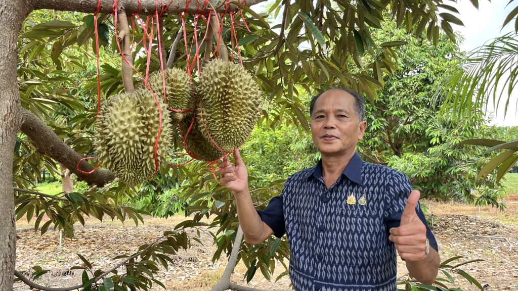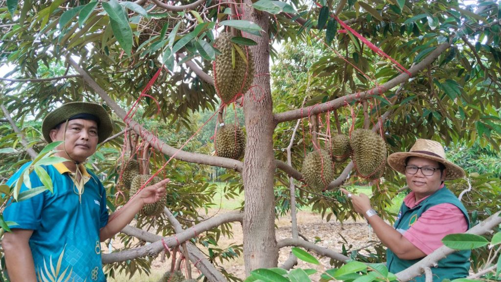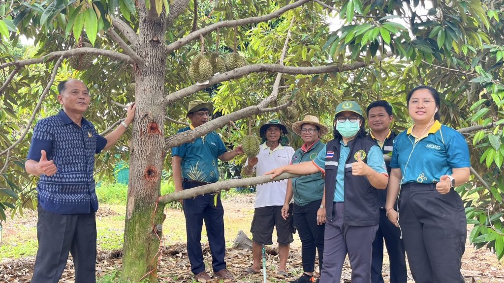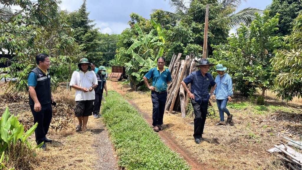 นที่ 6 มิถุนายน 2568 นายนพดล ผุดผ่อง เกษตรจังหวัดยโสธร พร้อมด้วย นางสาวจันทราพร ประธาน หัวหน้ากลุ่มส่งเสริมและพัฒนาการผลิต นางสาวสุภัทตา สินไชย์ หัวหน้ากลุ่มส่งเสริมและพัฒนาเกษตรกร สำนักงานเกษตรจังหวัดยโสธร ร่วมกับ นายสุชาติ ปกป้อง เกษตรอำเภอคำเขื่อนแก้ว พร้อมด้วย เจ้าหน้าที่สำนักงานเกษตรอำเภอคำเขื่อนแก้ว ติดตามเยี่ยมเยียนเกษตรกร นายวิเชียร สว่างแสง ปลูกทุเรียนบนพื้นที่ 2 ไร่ อายุ 7 ปี ขณะนี้อยู่ในช่วงการเก็บเกี่ยวผลผลิตทุเรียนพันธุ์หมอนทอง โดยทุเรียนจะทยอยสุกแก่ไม่พร้อมกัน ในการนี้เกษตรจังหวัดยโสธรได้ให้คำแนะนำการดูแลรักษาและการตลาด พร้อมทั้งสนับสนุนผลผลิตของเกษตรกรโดยสั่งจองผลผลิตล่วงหน้า (0635392994) ณ บ้านสว่าง หมู่ 4 ตำบลย่อ อำเภอคำเขื่อนแก้ว จังหวัดยโสธร