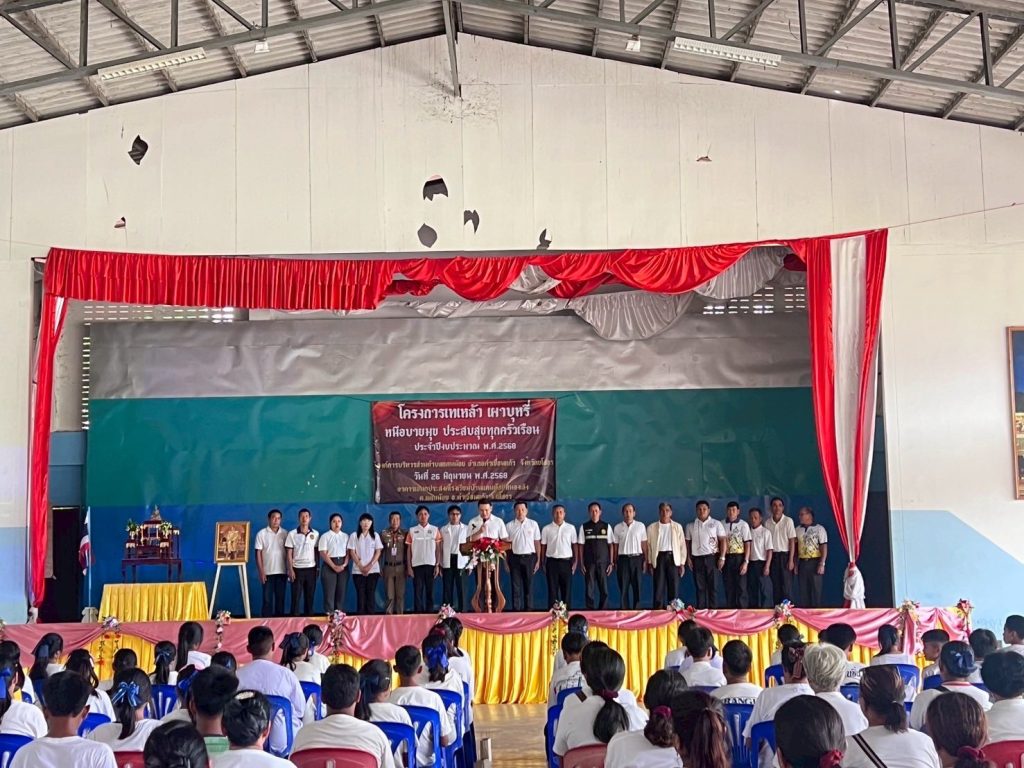 วันที่ 26 มิถุนายน 2568 นายสุชาติ ปกป้อง เกษตรอำเภอคำเขื่อนแก้ว มอบหมายให้ นางสาวนันท์มนัส บุนทรีรัตน์ นักวิชาการส่งเสริมการเกษตรชำนาญการ ร่วมในพิธีเปิดโครงการเทเหล้า เผาบุหรี่ หนีอบายมุข ประสบสุขทุกครัวเรือน ประจำปีงบประมาณ 2568 จัดโดย องค์การบริหารส่วนตำบลแคนน้อย เพื่อตระหนักถึงโทษและผลกระทบต่อชุมชนและสังคมจากการดื่มเครื่องดื่มแอลกอฮอล์และการบริโภคยาสูบ และเพิ่มจำนวนผู้ที่ต้องการลด ละ เลิก เครื่องดื่มแอลกอฮอล์ โดยมี พ.จ.อ.อนุสิทธิ์ บัวหุ่ง นายอำเภอคำเขื่อนแก้ว เป็นประธานพิธีเปิดโครงการ พร้อมด้วย นายบุญแก้ว สมวงศ์ สมาชิกสภาผู้แทนราษฎรจังหวัดยโสธร เขต 2 ปลัดอำเภอหัวหน้ากลุ่มงานบริหารงานปกครอง สัสดีอำเภอ ผู้แทน ผกก.สภ.คำเขื่อนแก้ว ผช.สสอ.คำเขื่อนแก้ว หัวหน้าส่วนราชการ ผู้บริหารสถานศึกษา ผู้บริหารองค์กรปกครองส่วนท้องถิ่น ข้าราชการ กำนัน ผู้ใหญ่บ้าน อสม. และนักเรียนเข้าร่วมพิธีเปิดโครงการฯ จำนวน 300 คน ณ ศาลาเอนกประสงค์ โรงเรียนบ้านแคนน้อยหนองเลิง ตำบลแคนน้อย อำเภอคำเขื่อนแก้ว จังหวัดยโสธร