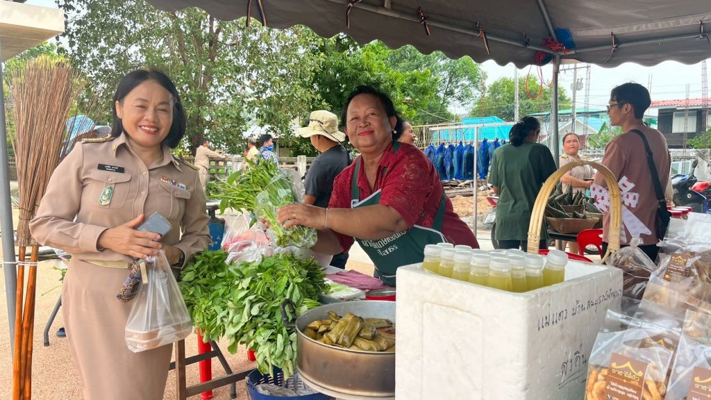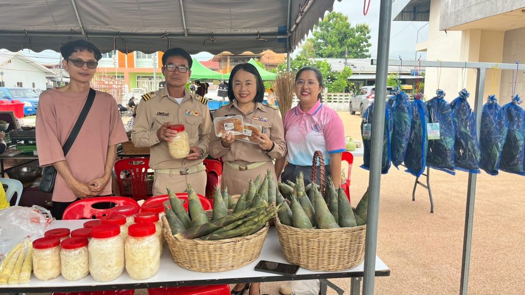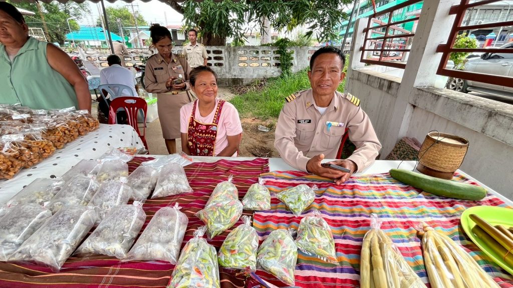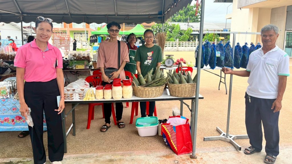 วันที่ 1 กรกฎาคม 2568 นายสุชาติ ปกป้อง เกษตรอำเภอคำเขื่อนแก้ว พร้อมด้วย เจ้าหน้าที่สำนักงานเกษตรอำเภอคำเขื่อนแก้ว ติดตามและสนับสนุนการนำสินค้าเกษตรของเกษตรกรในพื้นที่มาจำหน่ายภายในงานประชุมประจำเดือน กำนัน ผู้ใหญ่บ้าน ฯลฯ ประจำเดือนกรกฎาคม 2568 ซึ่งจัดขึ้น ณ หอประชุม 100 ปี อำเภอคำเขื่อนแก้ว จังหวัดยโสธร สินค้าเกษตรที่นำมาจำหน่ายในงานประกอบด้วย พืชผักปลอดสารพิษ ผลผลิตแปรรูปจากกลุ่มวิสาหกิจชุมชน ข้าวอินทรีย์ น้ำสมุนไพร และสินค้าเกษตรตามฤดูกาล โดยได้รับความสนใจจากผู้เข้าร่วมประชุมและประชาชนที่มาร่วมงานเป็นจำนวนมาก การจัดจำหน่ายสินค้าเกษตรในครั้งนี้เป็นการส่งเสริมช่องทางการตลาด เพิ่มรายได้ให้เกษตรกรในพื้นที่ และเป็นการประชาสัมพันธ์ผลผลิตทางการเกษตรของอำเภอคำเขื่อนแก้วให้เป็นที่รู้จักในวงกว้างมากยิ่งขึ้น