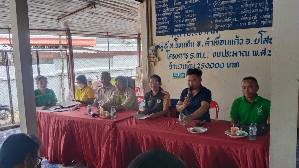 วันที่ 8 กรกฎาคม 2568 นายสุชาติ ปกป้อง เกษตรอำเภอคำเขื่อนแก้ว มอบหมายให้ นายศอรทิน ทิศทะษะ และ นางสาวสุภลักษณ์ โพธิ์เงิน นักวิชาการส่งเสริมการเกษตร เจ้าหน้าที่สำนักงานเกษตรอำเภอคำเขื่อนแก้ว อบรมถ่ายทอดเทคโนโลยีการพัฒนาศักยภาพ ศูนย์ผลิตเมล็ดพันธุ์และขยายพันธุ์พืชชุมชน โครงการส่งเสริมการผลิตสินค้าเกษตรปลอดภัยได้มาตรฐาน ปี 2568 วัตถุประสงค์เพื่อมุ่งเน้นการเพิ่มประสิทธิภาพการผลิตเมล็ดพันธุ์พืชที่มีคุณภาพและได้มาตรฐาน สนับสนุนเกษตรกรให้สามารถผลิตสินค้าเกษตรปลอดภัยและได้มาตรฐานตามที่ตลาดต้องการ โดยมีเป้าหมายหลักคือการสร้างความเข้มแข็งให้กับศูนย์ผลิตเมล็ดพันธุ์และขยายพันธุ์พืชชุมชน เพื่อให้เป็นแหล่งผลิตเมล็ดพันธุ์ที่มีคุณภาพสำหรับชุมชนและพื้นที่ใกล้เคียง ณ ศาลาประชาคม บ้านโพนทัน หมู่ที่ 5 ตำบลโพนทัน อำเภอคำเขื่อนแก้ว จังหวัดยโสธร