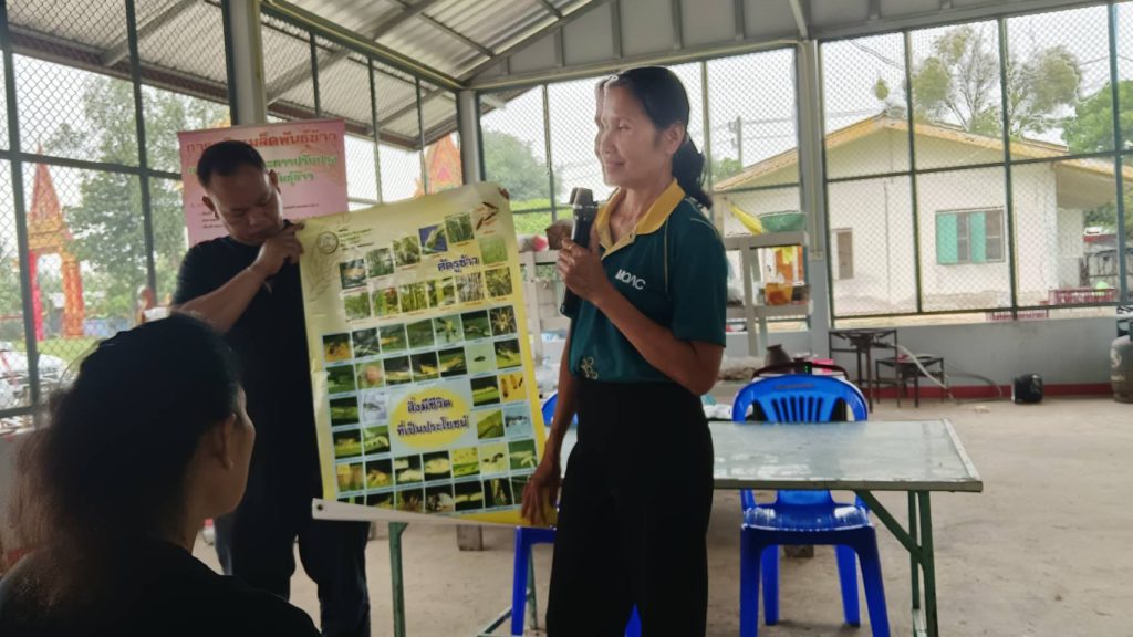 วันที่ 16 กรกฎาคม 2568 นายสุชาติ ปกป้อง เกษตรอำเภอคำเขื่อนแก้ว มอบหมายให้ นางลักขณา นิลาลาด นักวิชาการส่งเสริมการเกษตรชำนาญการพิเศษ อบรมเกษตรกรตามกระบวนการโรงเรียนเกษตรกร โครงการการพัฒนาด้านเกษตร ปี 2568 กิจกรรมส่งเสริมการผลิตข้าวหอมมะลิอินทรีย์ระบบ PGS รายใหม่ อบรมเกษตรกรตามกระบวนการโรงเรียนเกษตรกร ครั้งที่ 3 โดยมีเนื้อหา การลงแปลงสำรวจระบบนิเวศในนาข้าว (AESA) กิจกรรมกลุ่มสัมพันธ์ การวิเคราะห์ระบบนิเวศในนาข้าว การจัดการแปลงนาข้าว การเก็บเกี่ยวและวิทยาการหลังการเก็บเกี่ยว การเก็บรักษาพันธุ์ข้าว การตลาดข้าวอินทรีย์ แนวทางการตรวจและการรายงานการเยี่ยมฟาร์มเพื่อน (Peer Reviews) ของ PGS อาสา การบันทึกเอกสารตามแบบบันทึกฟาร์ม F1-F6 ประเมินผลการฝึกอบรม สรุปผลการฝึกอบรม ณ ศาลาวัดบ้านเหล่ามะเขียว หมู่ที่ 4 ตำบลกุดกุง อำเภอคำเขื่อนแก้ว จังหวัดยโสธร