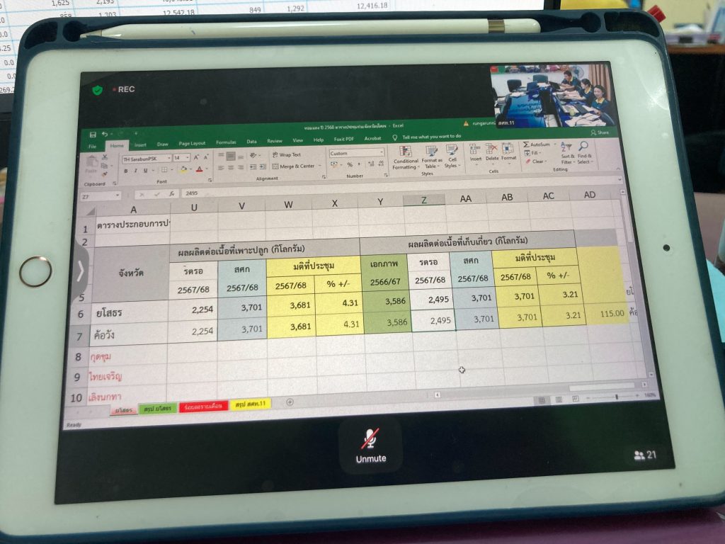 วันที่ 16 กรกฎาคม 2568 นายสุชาติ ปกป้อง เกษตรอำเภอคำเขื่อนแก้ว มอบหมายให้ นางสาวณัฐธีรยา คณะบุตร นักวิชาการส่งเสริมการเกษตรชำนาญการ เข้าร่วมประชุมหารือข้อมูลปริมาณการผลิตพืชเศรษฐกิจ ครั้งที่ 1/2568 ปีงบประมาณ พ.ศ. 2568 ผ่านระบบออนไลน์ Zoom Meeting จำนวน 4 สินค้า ได้แก่ 1) ข้าวนาปี ปีเพาะปลูก 2567/68 2) หอมแดง ปีเพาะปลูก 2567/68 3) ยางพารา ปี 2567 และ 4) ปาล์มน้ำมัน ปี 2567 เพื่อให้การจัดทำข้อมูลสารสนเทศการเกษตรด้านพืชเป็นไปอย่างมีระบบ เป็นเอกภาพ มีความถูกต้อง และน่าเชื่อถือ โดยมีหน่วยงานที่เข้าร่วมประชุมฯ ได้แก่ กรมส่งเสริมการเกษตร กรมการข้าว กรมชลประทาน สำนักงานกระทรวงเกษตรและสหกรณ์ กรมวิชาการเกษตร การยางแห่งประเทศไทย และสำนักงานเศรษฐกิจการเกษตร โดยมี นางสิราภรณ์ เธียรโพธิ์ภิรักษ์ ผู้อำนวยการส่วนสารสนเทศการเกษตร สำนักงานเศรษฐกิจการเกษตรที่ 11 อุบลราชธานี เป็นประธานการประชุมฯ