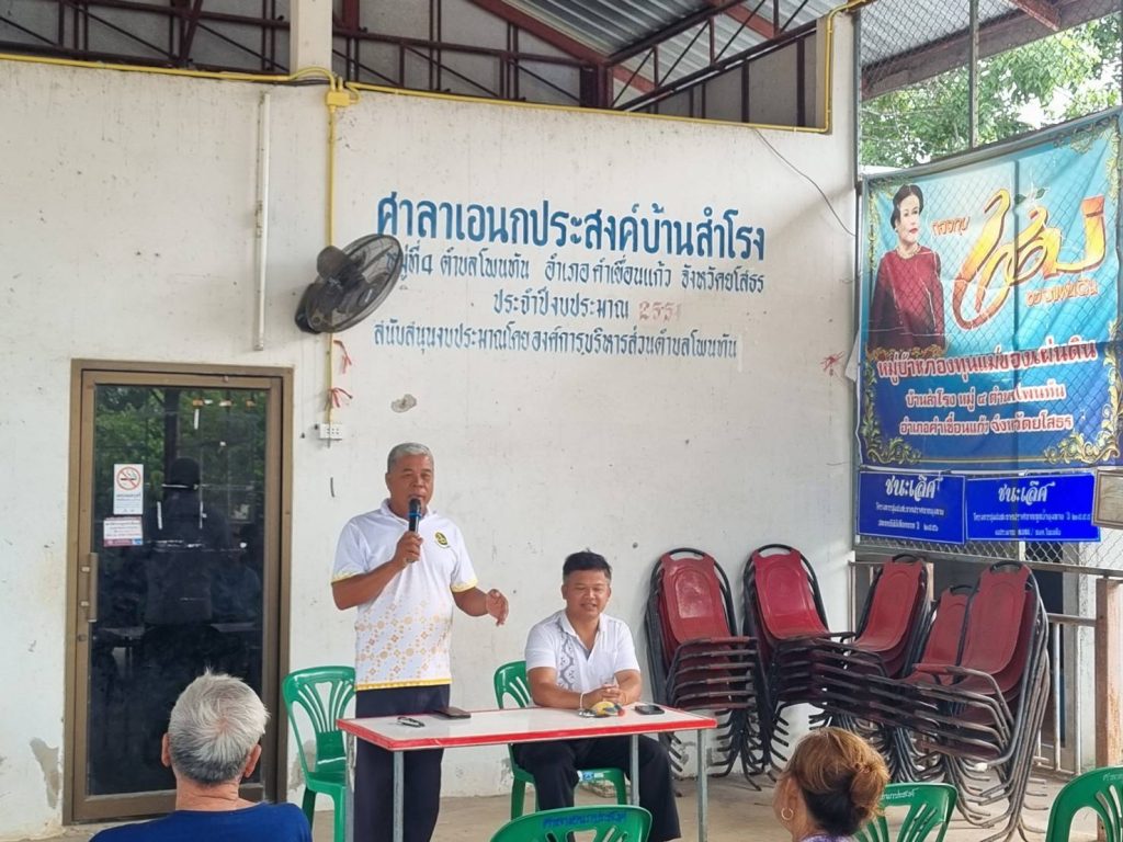 วันที่ 20 กรกฎาคม 2568 นายสุชาติ ปกป้อง เกษตรอำเภอคำเขื่อนแก้ว มอบหมายให้ นายศอรทิน ทิศทะษะ นักวิชาการส่งเสริมการเกษตร จัดเวทีประชาคมเกษตรกรผู้ปลูกข้าวนาปี /มันสำปะหลัง ฤดูกาลผลิต 68/69 ตามวัตถุประสงค์ของเวทีประชาคม ในการรับรองข้อมูลเกษตรกรที่ขึ้นทะเบียนปลูกข้าวนาปี/มันสำปะหลัง ตรวจสอบพื้นที่เพาะปลูก ความถูกต้องของพิกัด และชนิดพืชที่ปลูก สร้างความเข้าใจเกี่ยวกับหลักเกณฑ์การขึ้นทะเบียนเกษตรกร และสิทธิประโยชน์ที่อาจได้รับจากภาครัฐ และรับฟังข้อคิดเห็นและข้อเสนอแนะจากเกษตรกรในพื้นที่ ณ ศาลาประชาคมบ้านสำโรง หมู่ที่ 4 ตำบลโพนทัน อำเภอคำเขื่อนแก้ว จังหวัดยโสธร