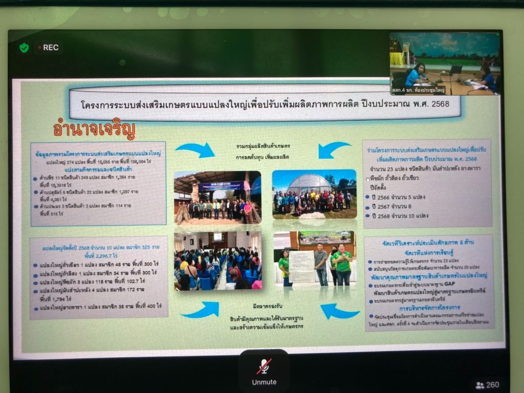 วันที่ 1 สิงหาคม 2568 นายสุชาติ ปกป้อง เกษตรอำเภอคำเขื่อนแก้ว มอบหมายให้ นางสาวณัฐธีรยา คณะบุตร นักวิชาการส่งเสริมการเกษตรชำนาญการ เข้าร่วมประชุมติดตามประเมินผลการดำเนินงานโครงการระบบส่งเสริมเกษตรแบบแปลงใหญ่เพื่อปรับเพิ่มผลิตภาพการผลิต ประจำปี 2568 ผ่านระบบออนไลน์ (Zoom Meeting) จากสำนักงาน ส่งเสริมและพัฒนาการเกษตรที่ 4 จังหวัดขอนแก่น เพื่อขับเคลื่อนการดำเนินงานเครือข่ายให้เกิดประสิทธิภาพ และประสิทธิผลตามวัตถุประสงค์ของโครงการ โดยมีนายกมล โสพัฒน์ ผู้อำนวยการสำนักงานส่งเสริมและพัฒนาการเกษตรที่ 4 จังหวัดขอนแก่น เป็นประธานเปิดการประชุม ณ สำนักงานเกษตรอำเภอคำเขื่อนแก้ว จังหวัดยโสธร