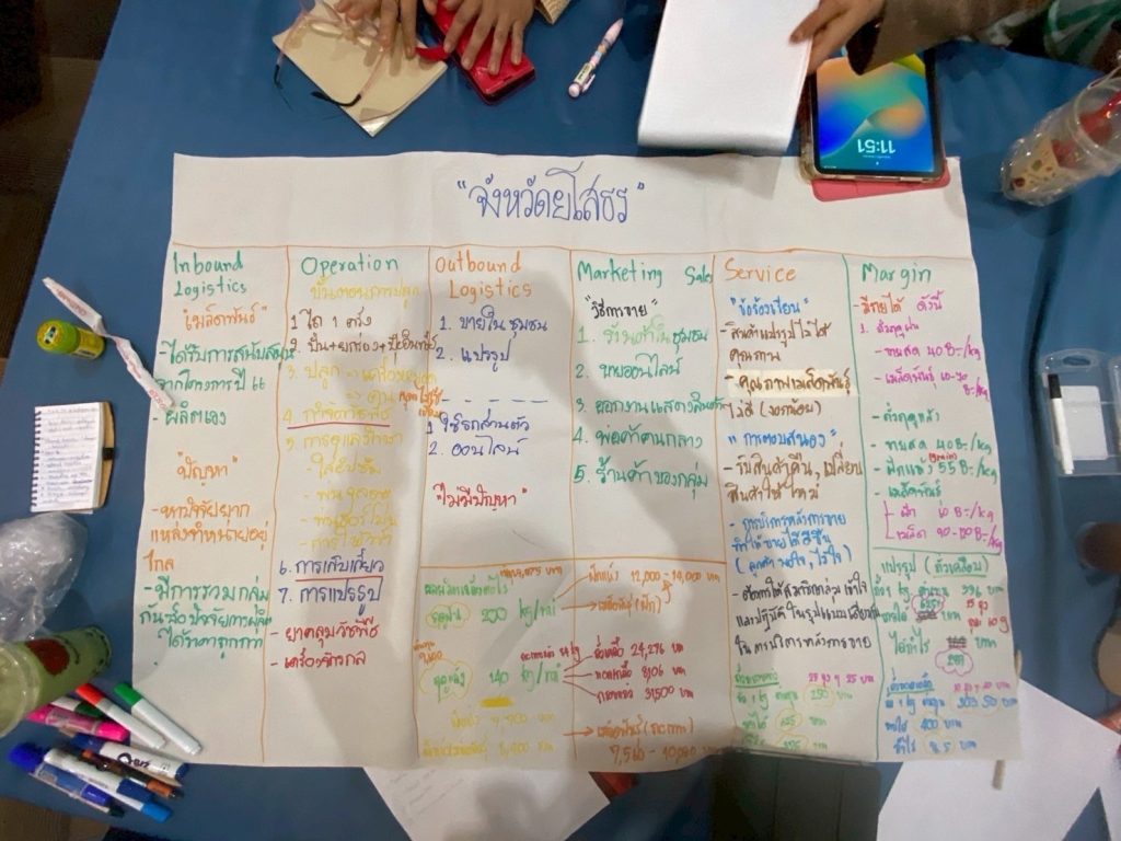 3) การแบ่งกลุ่มฝึกปฏิบัติ “การจัดทำแผนการพัฒนาชุมชนผู้ผลิตเมล็ดพันธุ์ถั่วลิสงเกษตรศาสตร์ สวก. 1 (Seed Bank)