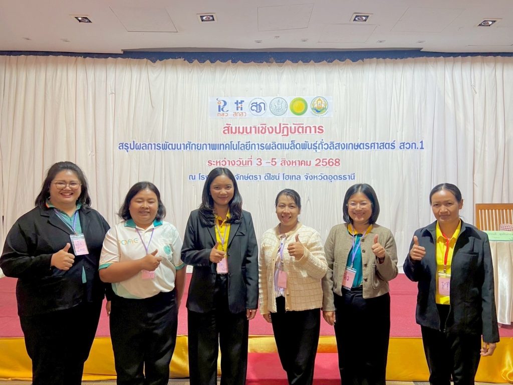 วันที่ 3-5 สิงหาคม 2568 นายสุชาติ ปกป้อง เกษตรอำเภอคำเขื่อนแก้ว มอบหมายให้ นางสาวสุธิษา สิมมา นักวิชาการส่งเสริมการเกษตรชำนาญการ พร้อมด้วย นางสาวฐิติพร โคกศรี เกษตรกรผู้เข้าร่วมโครงการ เข้าร่วมสัมมนาเชิงปฏิบัติการ สรุปผลการพัฒนาศักยภาพเทคโนโลยีการผลิตเมล็ดพันธุ์ถั่วลิสง พันธุ์ถั่วลิสงเกษตรศาสตร์ สวก. 1 โครงการวิจัยการเกษตร เรื่อง “ยกระดับชุมชนสู่การผลิตเมล็ดพันธุ์ถั่วลิสงเกษตรศาสตร์ สวก. 1 ในพื้นที่ภาคตะวันออกเฉียงเหนือ” ณ โรงแรมประจักษ์ตรา ดีไซน์ โฮเทล จังหวัดอุดรธานี โดยการสัมมนาเชิงปฏิบัติการครั้งนี้ประกอบด้วย หัวข้อ ดังนี้