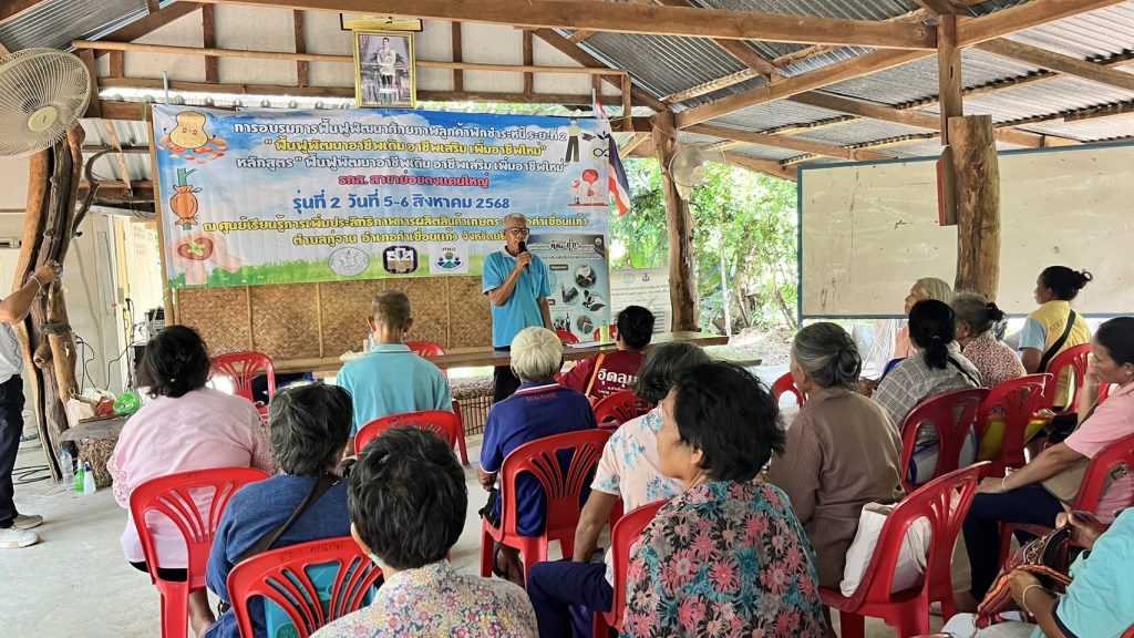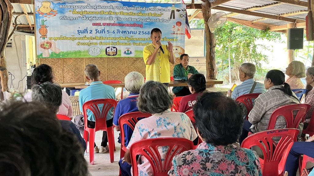 วันที่ 5-6 สิงหาคม 2568 นายสุชาติ ปกป้อง เกษตรอำเภอคำเขื่อนแก้ว พร้อมด้วย เจ้าหน้าที่สำนักงานเกษตรอำเภอคำเขื่อนแก้ว และ วิทยากรเกษตรกรต้นแบบ ร่วมกับ เจ้าหน้าที่ ธกส. จัดการอบรมการฟื้นฟูพัฒนาศักยภาพลูกค้าพักชำระหนี้ระยะที่ 2 หลักสูตร “ฟื้นฟูพัฒนาอาชีพเดิม อาชีพเสริม เพิ่มอาชีพใหม่” ธกส.สาขาย่อยดงแคนใหญ่ รุ่นที่ 2 ระหว่างวันที่ 5-6 สิงหาคม 2568 ณ ศูนย์เรียนรู้การเพิ่มประสิทธิภาพการผลิตสินค้าเกษตรอำเภอคำเขื่อนแก้ว บ้านโคกโก่ย หมู่ 9 ตำบลกู่จาน อำเภอคำเขื่อนแก้ว จังหวัดยโสธร