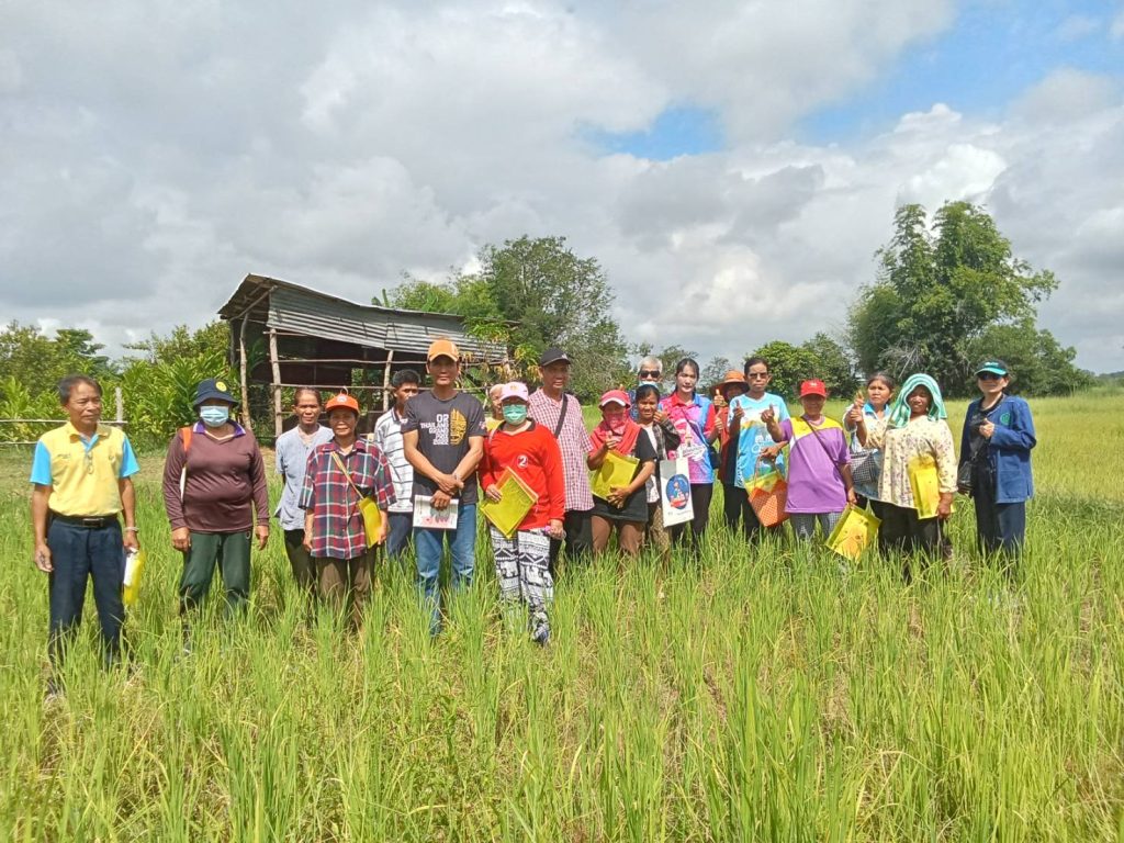 วันที่ 20 สิงหาคม 2568 นายสุชาติ ปกป้อง เกษตรอำเภอคำเขื่อนแก้ว มอบหมายให้ นางสาวสุภลักษณ์ โพธิ์เงิน นักวิชาการส่งเสริมการเกษตร ฝึกอบรมเกษตรกรตามกระบวนการโรงเรียนเกษตรกร โครงการการพัฒนาด้านเกษตร ปี 2568 กิจกรรมย่อยที่ 1.5 ส่งเสริมการผลิตข้าวหอมมะลิอินทรีย์ระบบ PGS รายเก่า เรื่อง การวิเคราะห์ระบบนิเวศ การจัดการแปลงนาข้าว การตัดพันธุ์ปนแปลงนาข้าว เทคนิควิธีการเพิ่มผลผลิตข้าวโดยการใช้น้ำหมักและปุ๋ยอินทรีย์ ตลาดข้าวอินทรีย์ การเก็บเกี่ยวและวิทยาการหลังการเก็บเกี่ยว การเก็บรักษาพันธุ์ข้าว การรายงานการเยี่ยมฟาร์มเพื่อน (Peer Reviews) การบันทึกเอกสารตามแบบบันทึกฟาร์ม F1-F6 ณ ศาลาประชาคมบ้านนาห่อม หมู่ที่ 6 ตำบลนาคำ อำเภอคำเขื่อนแก้ว จังหวัดยโสธร