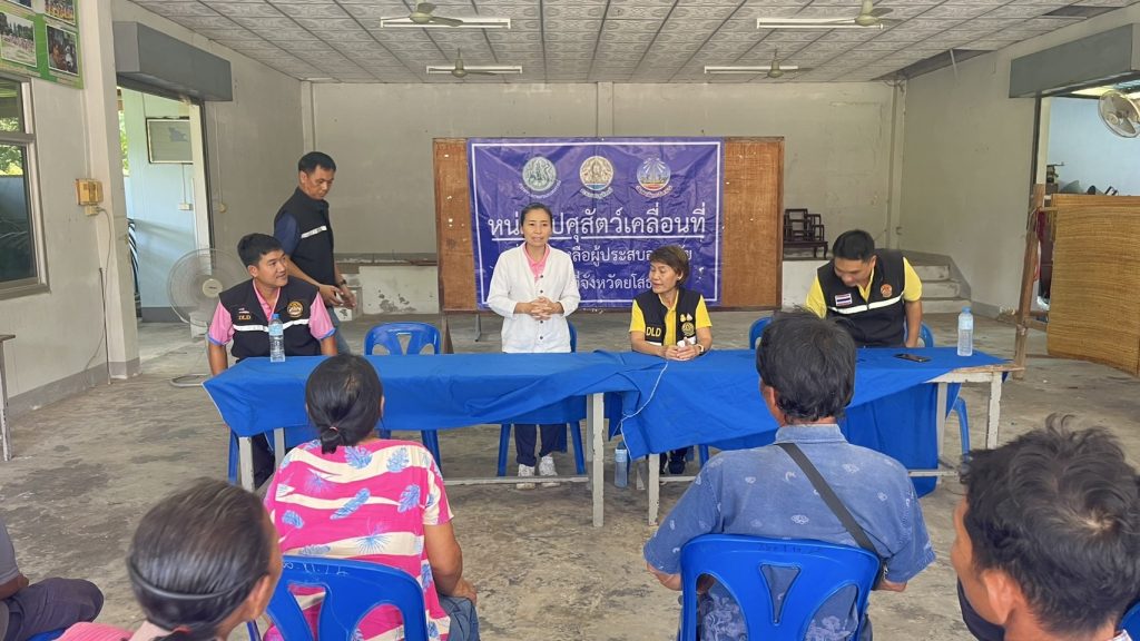 วันที่ 12 กันยายน 2568 นายสุชาติ ปกป้อง เกษตรอำเภอคำเขื่อนแก้ว มอบหมายให้ นางสาวณัฐธีรยา คณะบุตร และนางสาวนันท์มนัส บุนทรีรัตน์ นักวิชาการส่งเสริมการเกษตรชำนาญการ ร่วมกับ ศูนย์วิจัยและพัฒนาอาหารสัตว์ยโสธร สำนักงานปศุสัตว์จังหวัดยโสธร และสำนักงานปศุสัตว์อำเภอคำเขื่อนแก้ว ในกิจกรรมส่งมอบหญ้าอาหารสัตว์พระราชทานให้แก่เกษตรกรผู้เลี้ยงโค กระบือ เพื่อบรรเทาความเดือดร้อนด้านอาหารสัตว์ ในพื้นที่บ้านหนองเทา หมู่ 4 ตำบลนาแก อำเภอคำเขื่อนแก้ว จังหวัดยโสธร ในการนี้ ได้ชี้แจงข้อมูลโครงการสนับสนุนช่วยเหลือเกษตรกรผู้ปลูกข้าวนาปีและส่งเสริมการเพาะปลูกให้เหมาะสมกับศักยภาพพื้นที่ ปีการผลิต 2568/69 และการรายงานความเสียหายข้าวนาปีจากอุทกภัย ปี 2568 จากอุทกภัย (น้ำท่วม) และหลักเกณฑ์การให้ความช่วยเหลือในเขตพื้นที่ประสบสาธารณะภัย ในพื้นที่อำเภอคำเขื่อนแก้ว