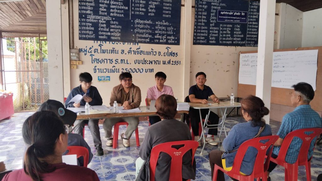 วันที่ 23 กันยายน 2568 นายสุชาติ ปกป้อง เกษตรอำเภอคำเขื่อนแก้ว มอบหมายให้ นายศอรทิน ทิศทะษะ นักวิชาการส่งเสริมการเกษตร ร่วมกับเจ้าหน้าที่บริษัทเซ็ลทรัลแล็ปไทย ติดตามโครงการส่งเสริมการผลิตสินค้าเกษตรปลอดภัยได้มาตรฐาน ปี 2568 จังหวัดยโสธร (งบกลุ่มจังหวัด) ของกลุ่มศูนย์ผลิตเมล็ดพันธุ์และขยายพันธุ์พืชชุมชน ตำบลโพนทัน อำเภอคำเขื่อนแก้ว จังหวัดยโสธร เพื่อเตรียมความพร้อมในการตรวจรับรองมาตรฐาน GAP เกษตรกร เป้าหมาย จำนวน 10 ราย ณ ศาลาประชาคม หมู่ 5 ตำบลโพนทัน อำเภอคำเขื่อนแก้ว จังหวัดยโสธร