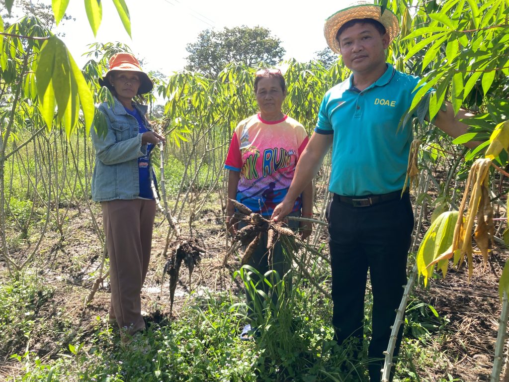 รักษาราชการแทนเกษตรอำเภอคำเขื่อนแก้ว มอบหมายให้ นางสาวณัฐธีรยา คณะบุตร นักวิชาการส่งเสริมการเกษตรชำนาญการ และ นายศอรทิน ทิศทะษะ นักวิชาการส่งเสริมการเกษตร ติดตามโครงการส่งเสริมการผลิตสินค้าเกษตรอินทรีย์ ปี 2568 (งบกลุ่มจังหวัด) กิจกรรมย่อยที่ 1.1 ส่งเสริมการผลิตข้าวหอมมะลิอินทรีย์รายใหม่ กลุ่มเกษตรอินทรีย์บ้านหนองตุกหลุก หมู่ 7 ตำบลนาแก และร่วมสำรวจพื้นที่ความเสียหายเบื้องต้นจากอุทกภัย (ด้านพืช) ณ แปลงปลูกมันสำปะหลัง หมู่ 7 ตำบลนาแก อำเภอคำเขื่อนแก้ว จังหวัดยโสธร