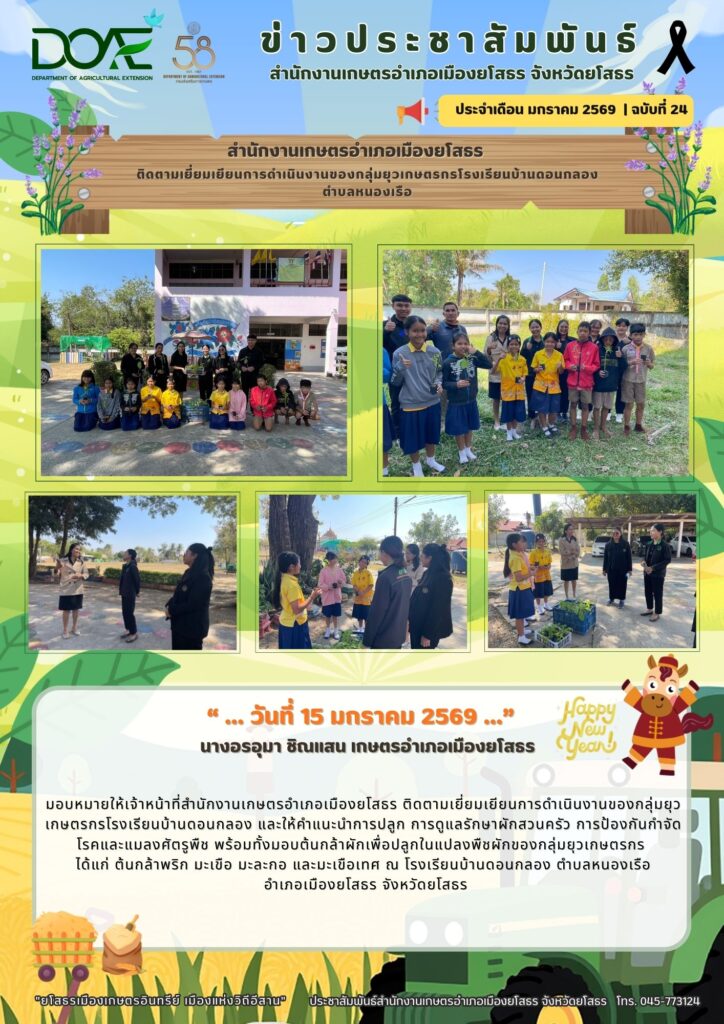 เกษตรเมืองยโสธร ติดตามเยี่ยมเยียนการดำเนินงานของกลุ่มยุวเกษตรกรโรงเรียนบ้านดอนกลอง