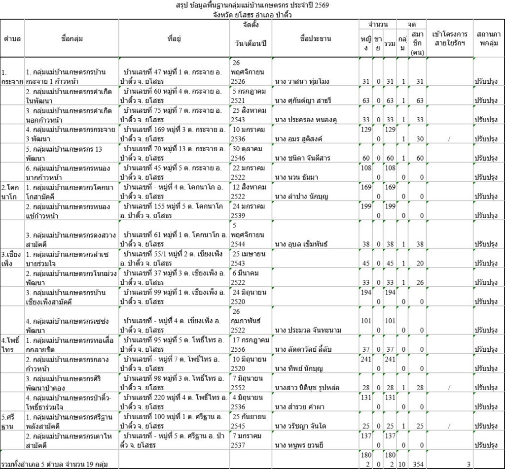 ข้อมูลวิสาหกิจชุมชน