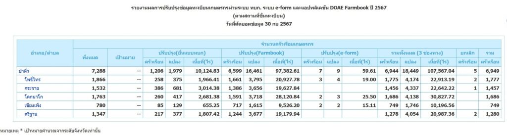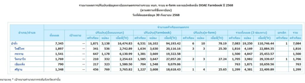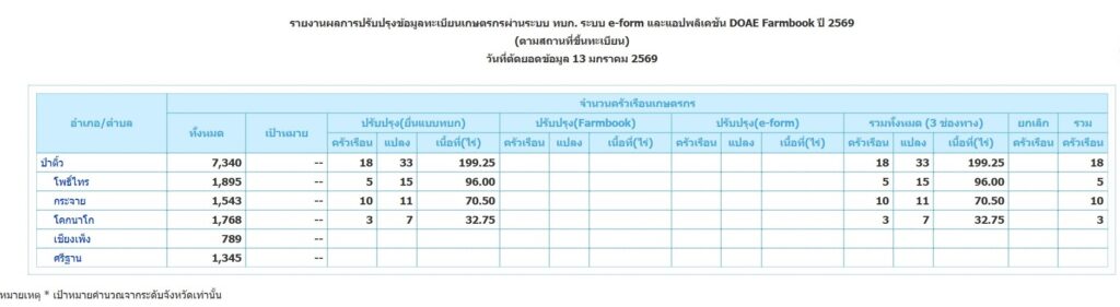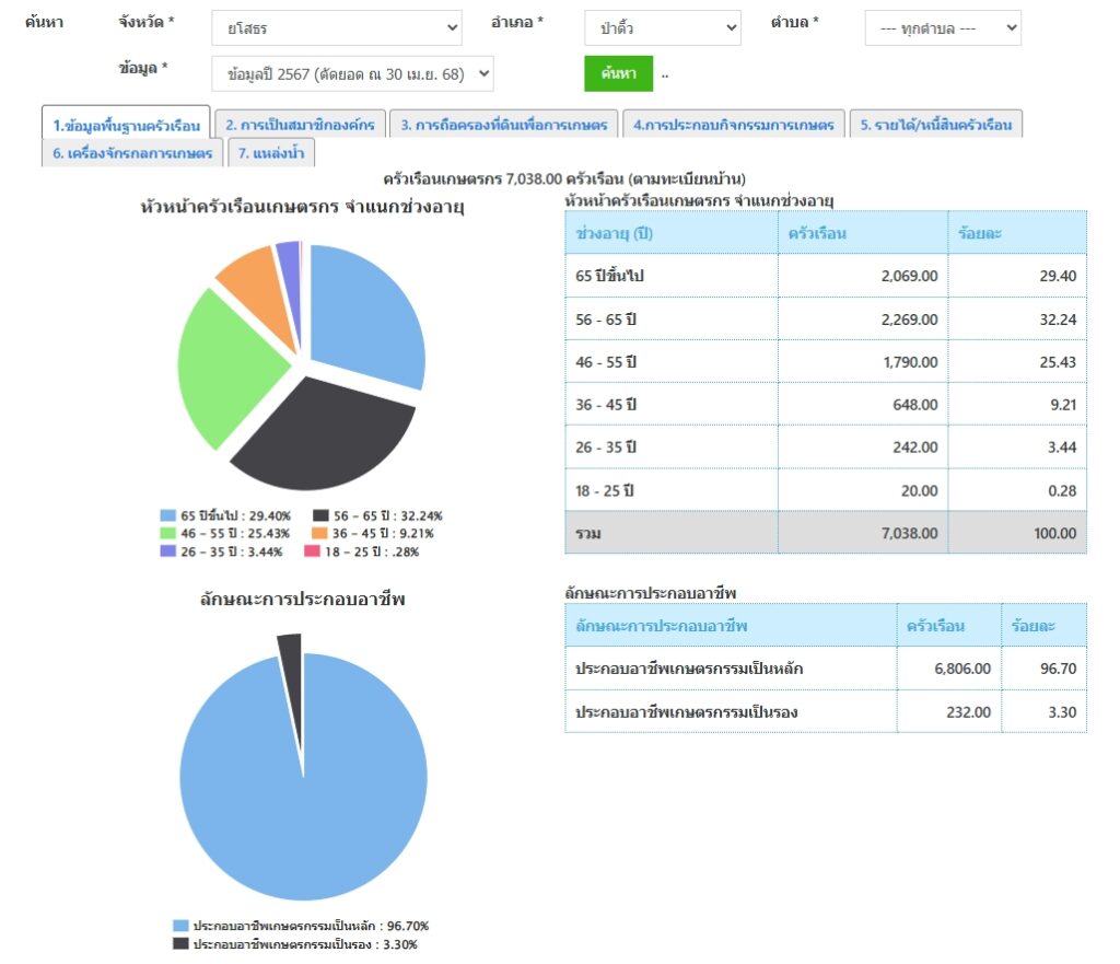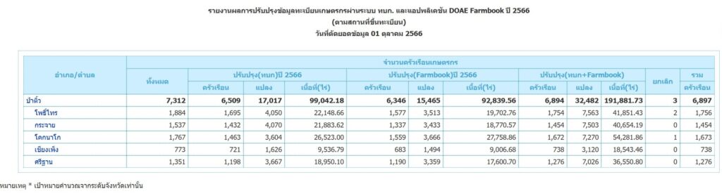 สถิติ ข้อมูล ทะเบียนเกษตรกร ปี 2568 ปี 2567 ปี 2566 ย้อนหลัง 3 ปี ดังนี้