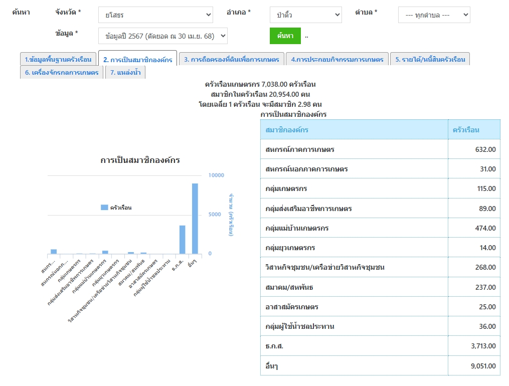 ข้อมูลเกษตรกรผู้ปลูกไม้ผล ไม้ยืนต้นเศรษฐกิจ อำเภอป่าติ้ว จังหวัดยโสธร