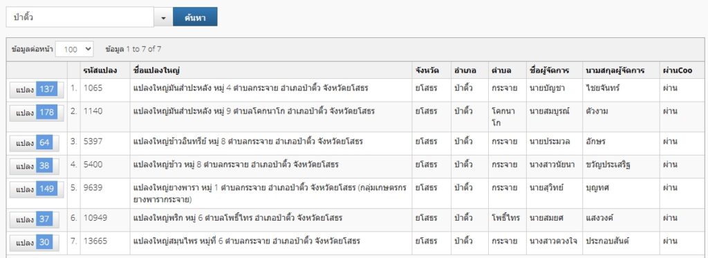 ข้อมูลเกษตรกรผู้ปลูกไม้ผล ไม้ยืนต้นเศรษฐกิจ อำเภอป่าติ้ว จังหวัดยโสธร
