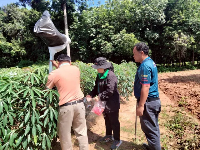 วันที่ 9 ตุลาคม 2568 นายนพดล ผุดผ่อง เกษตรจังหวัดยโสธร มอบหมายให้ นางรัชนีกร พบบุญ หัวหน้ากลุ่มอารักขาพืช พร้อมด้วย นางวัชราภรณ์ จวนสาง นวส.ชำนาญการ ,นายภานุชิต สีคุณหลิ่ว นวส.ชำนาญการ, นายธวิท เพียรหัด นวส.ชำนาญการ กลุ่มอารักขาพืช สำนักงานเกษตรจังหวัดยโสธร ติดตั้งอุปกรณ์วัดสภาพอากาศ ปี 2569โครงการ 1 อำเภอ 1 แปลงเกษตรอัจฉริยะ การเข้าใช้งานแอปพลิเคชัน DOAE PEST FORECAST และติดตามสถานการณ์ศัตรูพืช ร่วมกับ นางสาวดวงใจ ประกอบสันต์ นวส.ชำนาญการ สำนักงานเกษตรอำเภอป่าติ้ว ณ แปลงมันสำปะหลังของ นางอัครินทร์ ลุล่วง หมู่ที่ 3 ตำบลกระจาย อำเภอป่าติ้ว จังหวัดยโสธร