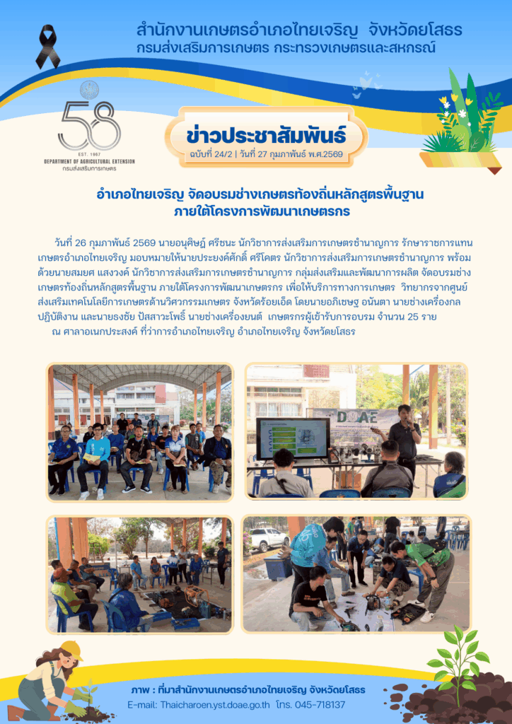 จัดอบรมช่างเกษตรท้องถิ่นหลักสูตรพื้นฐาน